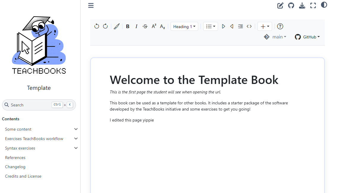 Figure 5.1: The TeachBooks editor embedded into an actual book, showcasing the WYSIWYG editing area and the familiar, icon-driven toolbar designed for a great user experience.